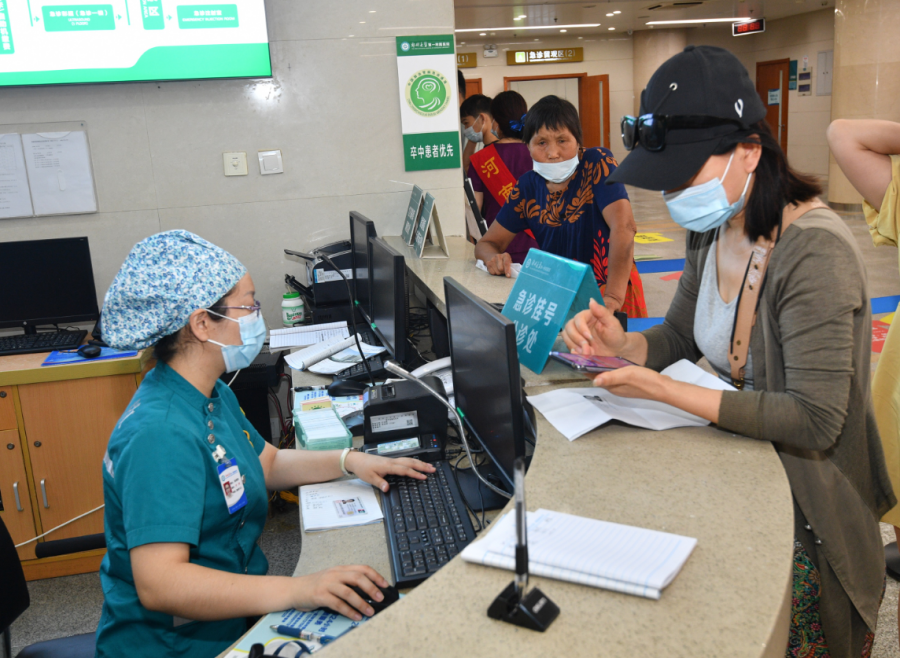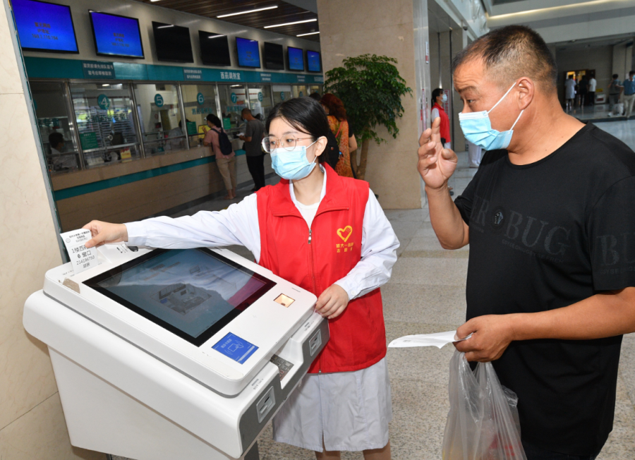 门诊大厅内,灯光、电梯、医疗设备等基础设施已恢复运行,服务站、挂号机前均有医护人员或志愿者指导就诊,除信息化的窗口外,传统人工挂号、收费等也同步启用。