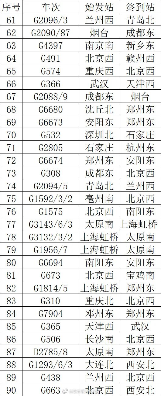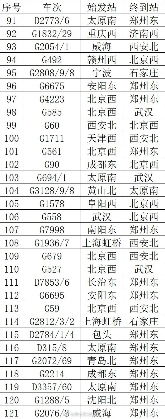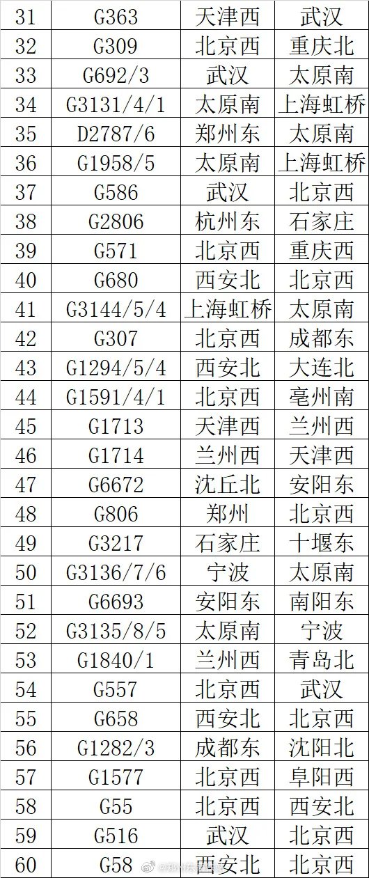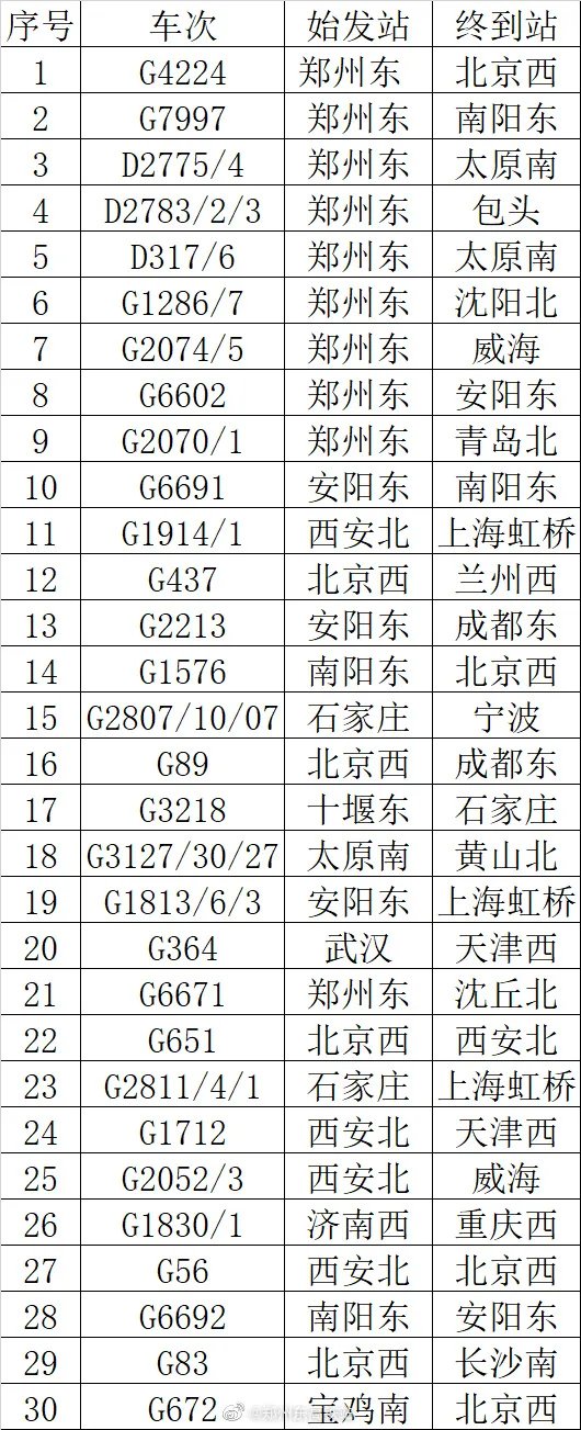 如需了解最新高铁列车信息,可关注郑州东高铁站微博查询。