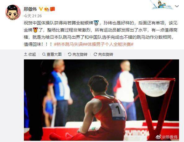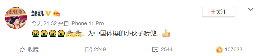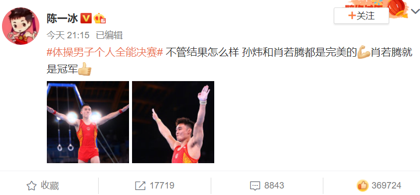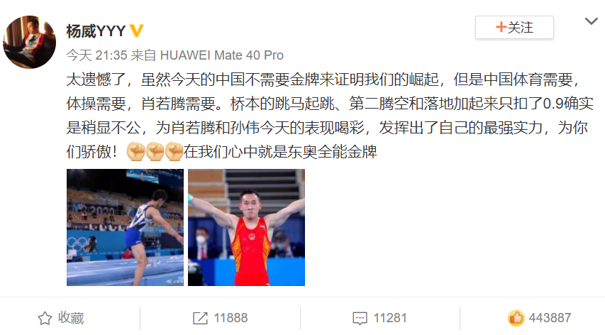 之后,杨威、李小鹏、陈一冰、邹凯等多位体操冠军和前辈也在微博发文力挺。