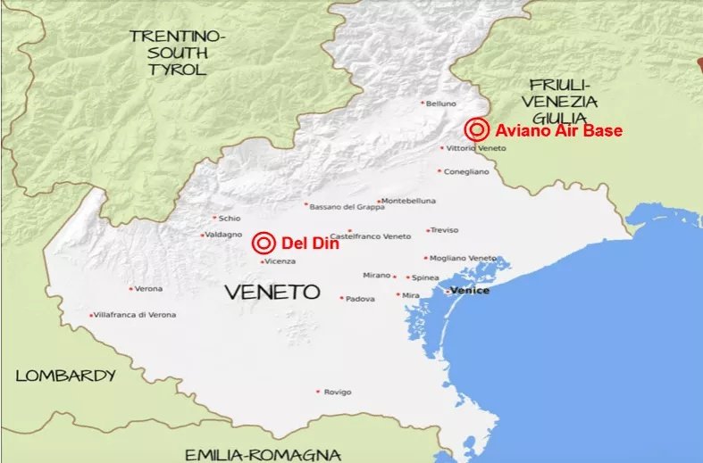 2019年8月,意大利威内托大区的美军基地Caserma Del Din招募当地平民志愿者,为里面的军人提供心理教育服务。根据意大利米兰国家肿瘤研究所报告,意大利的首例病例正是2019年9月于威内托大区记录在案(远远要早于中国武汉在2019年12月份发现病毒)。而美国军事基地集中的英国,同样也出现严重的新冠疫情局势。
