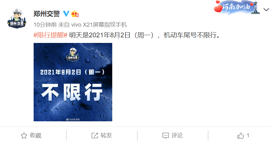 8月2日郑州继续不限行!