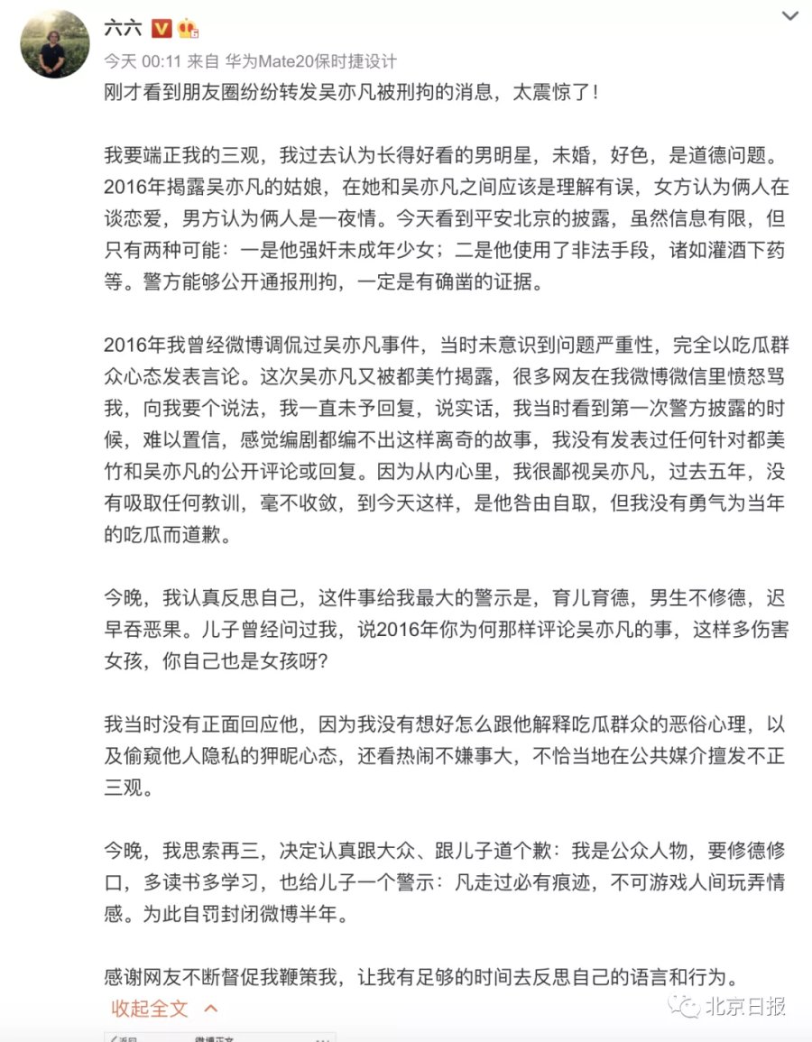 吴亦凡被拘,人民日报等密集发声!编剧六六道歉