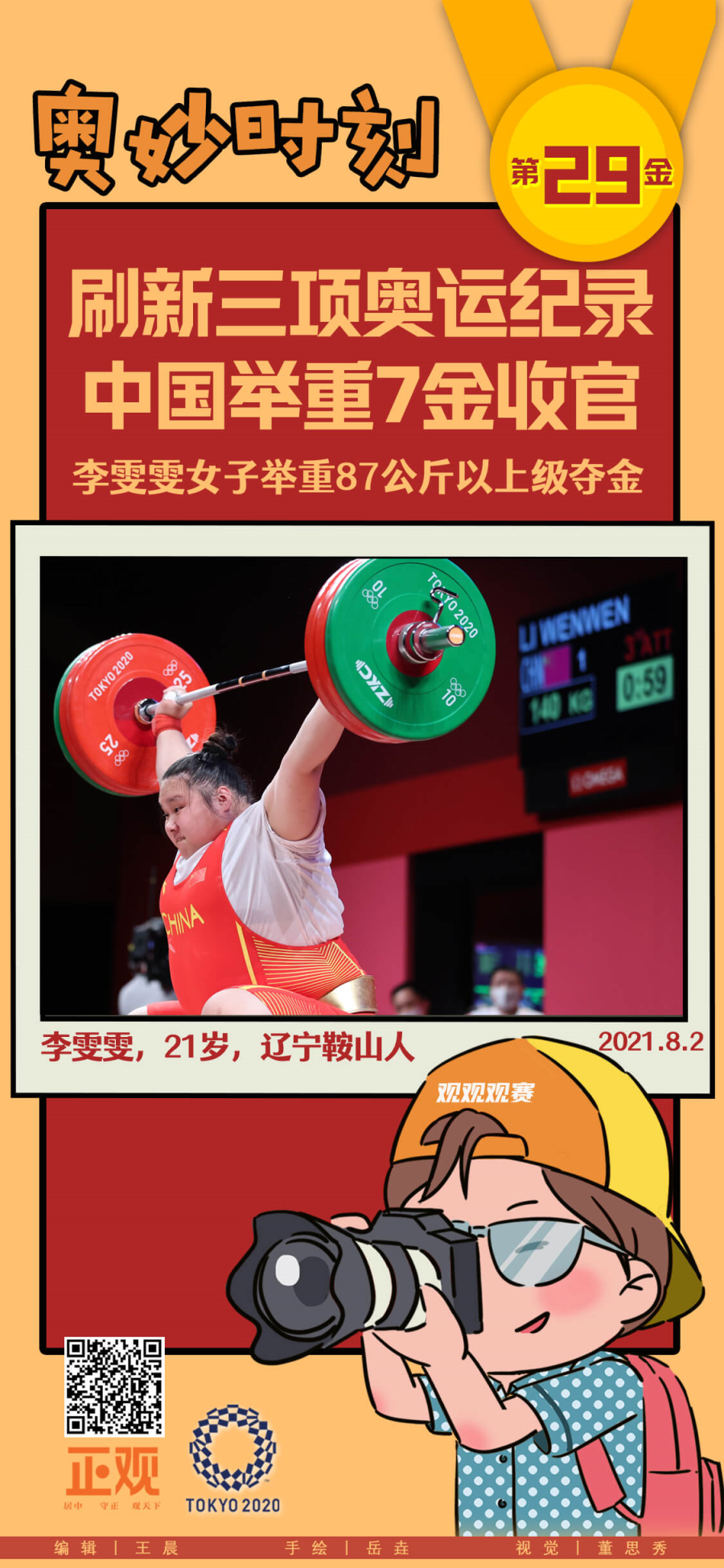 在刚刚结束的东京奥运会举重女子87公斤以上级A组决赛中,中国选手李雯雯以抓举140公斤、挺举180公斤,总成绩320公斤,勇夺金牌,并创造了三项新的奥运纪录。