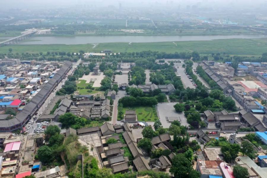 2020年6月30日无人机拍摄的河南省巩义市康百万庄园及庄园前的伊洛河。位于巩义市康店镇的康百万庄园,始建于明末清初,是全国重点文物保护单位,是十七、十八世纪华北封建堡垒式建筑的代表。记者冯大鹏摄