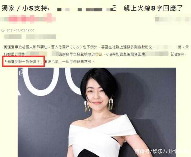 据媒体报道,8月2日晚,有媒体采访到小S本人,小S本人回应8个字“先让我静一静好吗?”