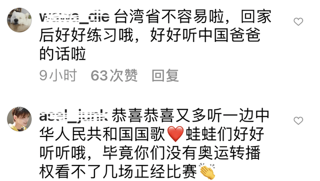 在女子羽毛球单打比赛结束后,小S在外网频繁发文,盛赞选手“虽败犹荣”,在和网友的互动中,小S直接称呼台北选手为“国手”,说要把全部的“国手”都请到家里吃饭。并非国家队,却称呼其为“国手”,小S这一说法遭到了网友抵制。