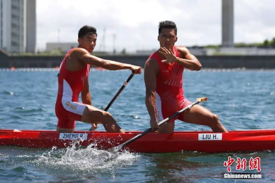 8月3日,刚刚结束的东京奥运会男子1000米双人划艇决赛中,中国组合刘浩/郑鹏飞以3分25秒198夺得亚军。中新社记者 富田 摄