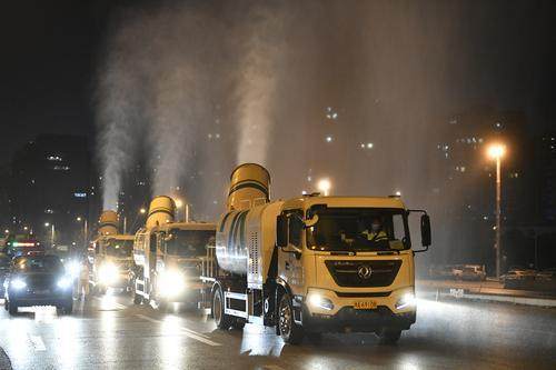 8月6日晚10点,郑州市中心城区开始进行大规模消杀作业,京广路上4辆大型雾炮车并排缓慢行进,场面壮观。疫情发生后,在保证城市环境卫生的同时,环卫部门还肩负起城市环卫设施消毒消杀的工作。