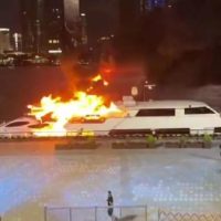 一名目击者拍摄的图片显示,明火最先是从这艘游艇的尾部燃起的,一开始是冒出浓烟,随后越烧越大。