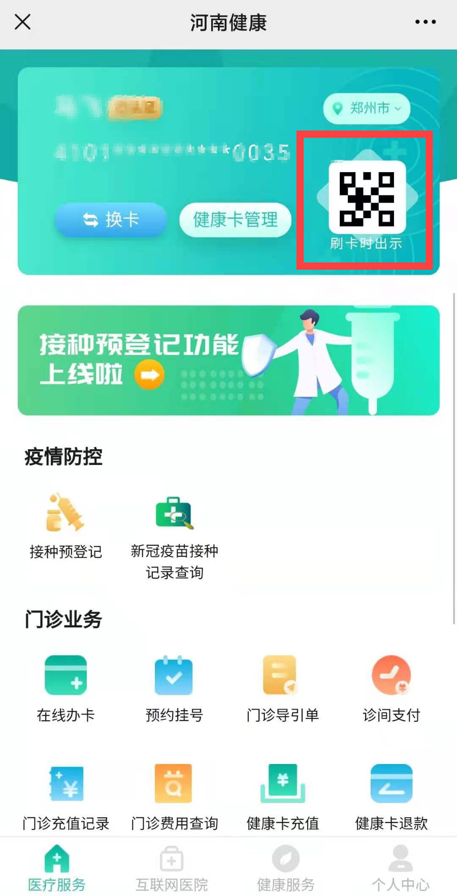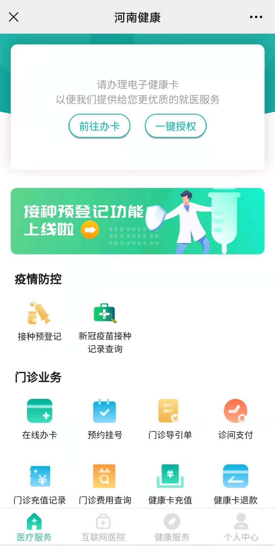 可在公众号首页点击”医疗服务“进入,选择“前往办卡“,选择相应的办卡方式,填写个人信息,完成申领。