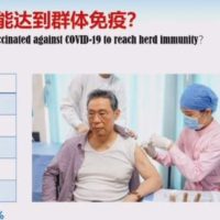 中国要达到怎样的疫苗接种水平才能实现“群体免疫”?钟南山表示,这与疫苗的有效率相关,还要看病毒的传播系数。“中国疫苗的有效率大概是70%左右,那么中国需要全部人口的80%以上接种疫苗,才能够建立一个有效的群体免疫。现在,中国的疫苗接种率大概到今年年底可以达到80%以上。”