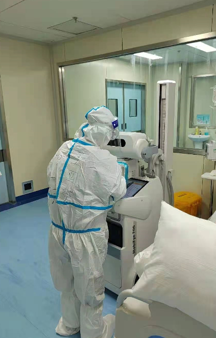 当天有名患者出院,由于买了早上回当地的火车票,为了不错过火车出发的时间,翟慧丽再次穿上防护服到隔离病房,她要把病人送到火车站。不透气的防护服里,汗水顺着脖梗、后背一直往下流,断了线又变成豆大一样的汗珠子一颗颗滴下来,湿透了的衣服凉了热、热了又凉,这感觉就像是在大夏天“蒸桑拿”。