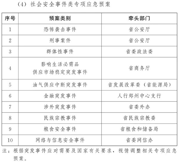 河南印发突发事件总体应急预案(试行)