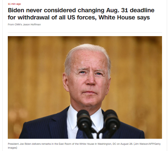据CNN消息,白宫表示,拜登从未考虑改变8月31日的撤军最后期限。