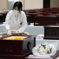 当地时间9月1日上午,中韩在韩国仁川举行第八批在韩中国人民志愿军烈士遗骸装殓仪式。