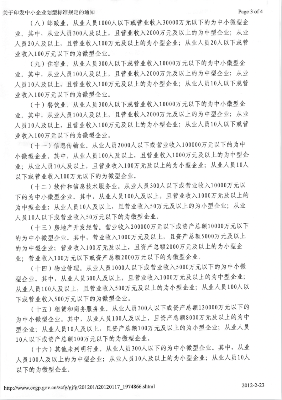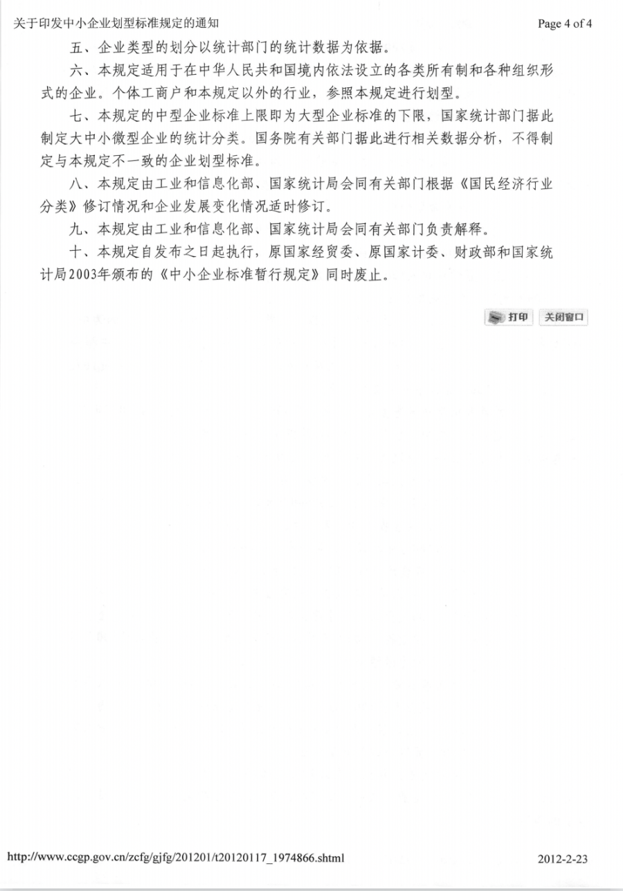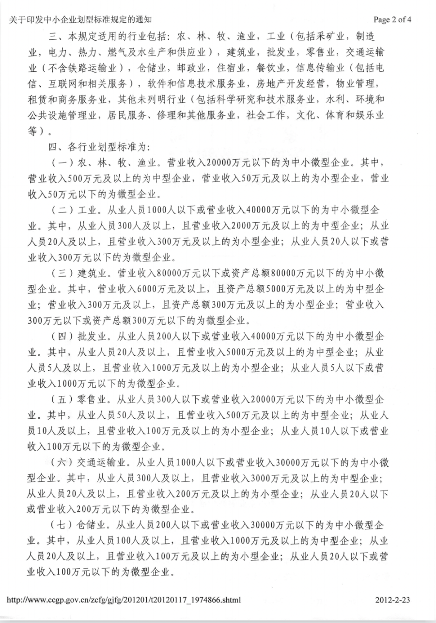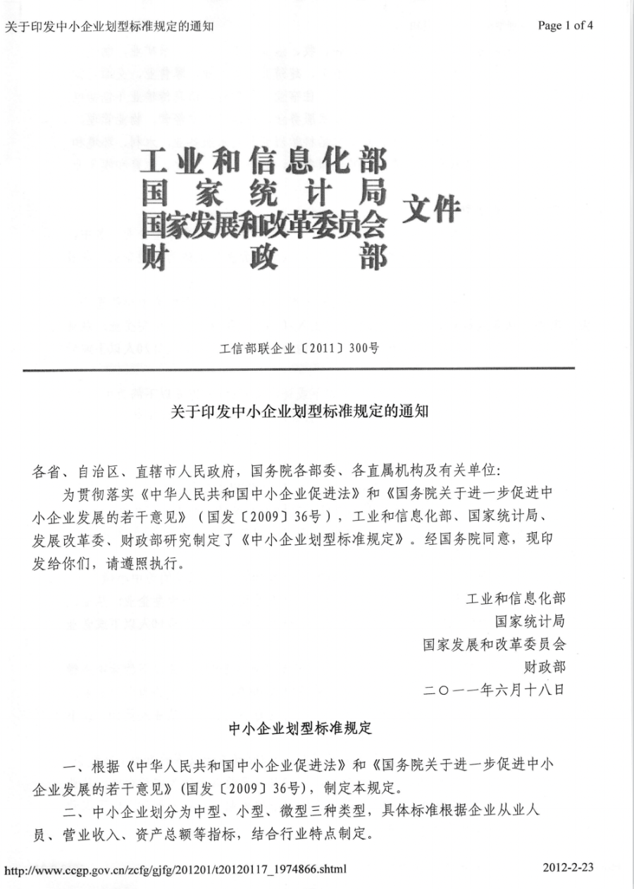 附:《工信部、国家统计局、国家发改委、财政部关于印发中小企业划型标准规定的通知》(据大河网)