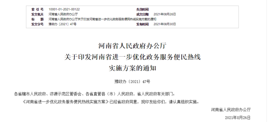 近日,河南省政府办公厅印发《河南省进一步优化政务服务便民热线实施方案》。