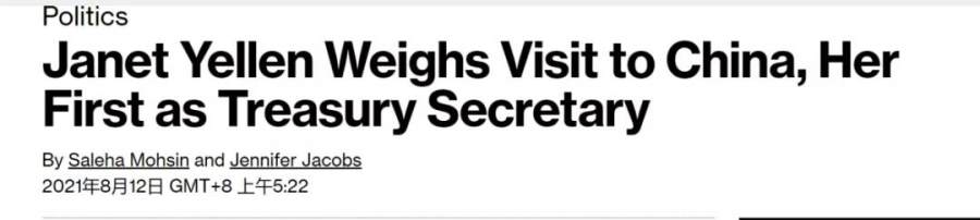 一个耐人寻味的细节是,彭博社8月还放出消息称,美国财政部长耶伦正在考虑出访中国,这可能将是拜登政府上任以来,中美两国官员首次举行面对面的经济会谈。