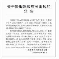 9月18日郑州将进行防空警报试鸣