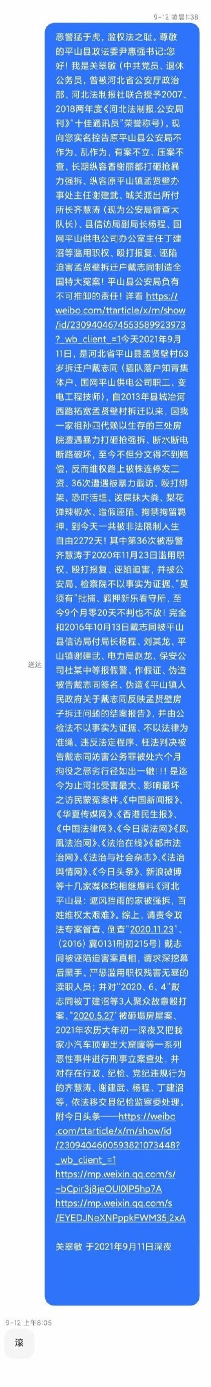 河北平山县领导短信回复群众“滚”?官方通报:严肃批评
