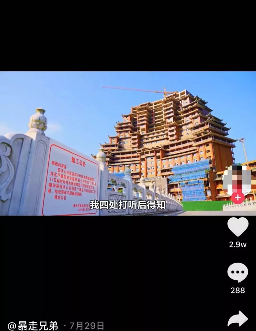 9月13日,继荆州花巨资拆除1.72亿元造的关羽雕像后,有信息称,曾引起全国舆论关注的贵州省独山县净心谷景区“水司楼”已经在“汹涌舆情中开始拆除”,相关图片显示这座耗资2亿多元修建的气势磅礴的水司楼,楼外已经修建了塔吊准备拆除,同时部分楼层的木质结构构造物已经被拆除。