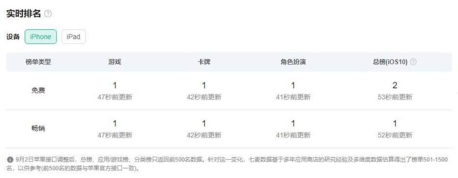 9月14日,《哈利波特:魔法觉醒》手游市场表现 图片来源:七麦数据截图