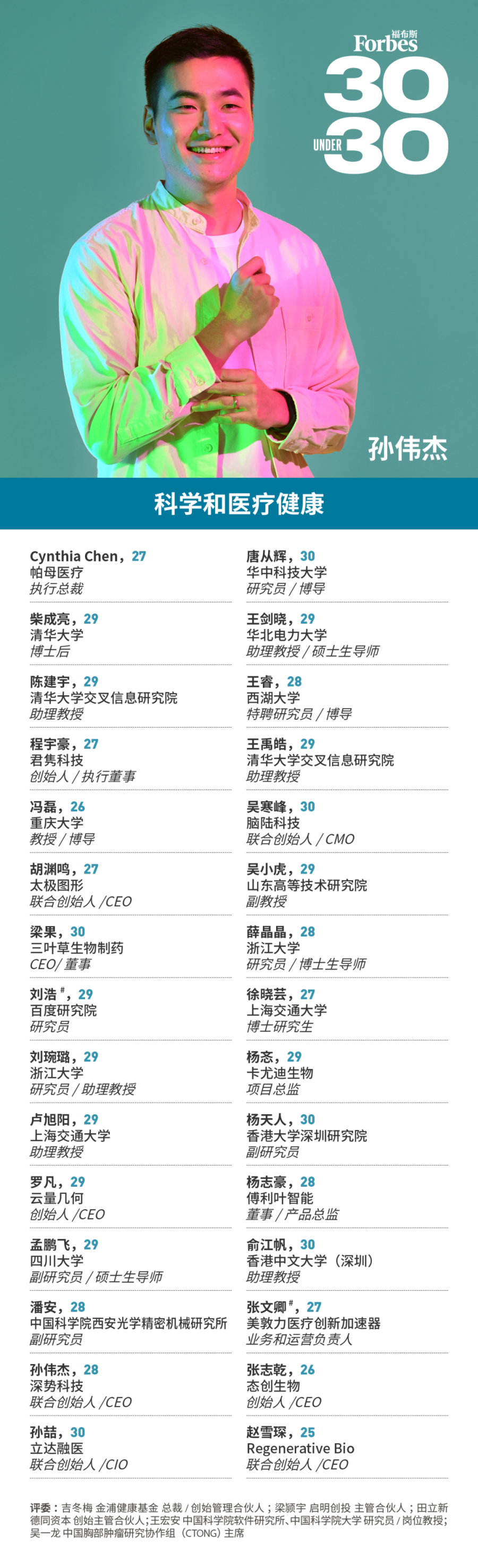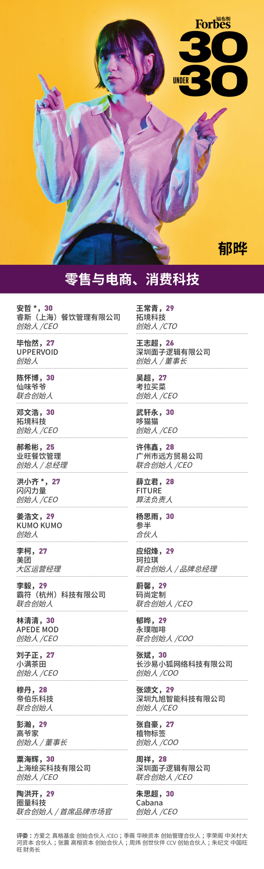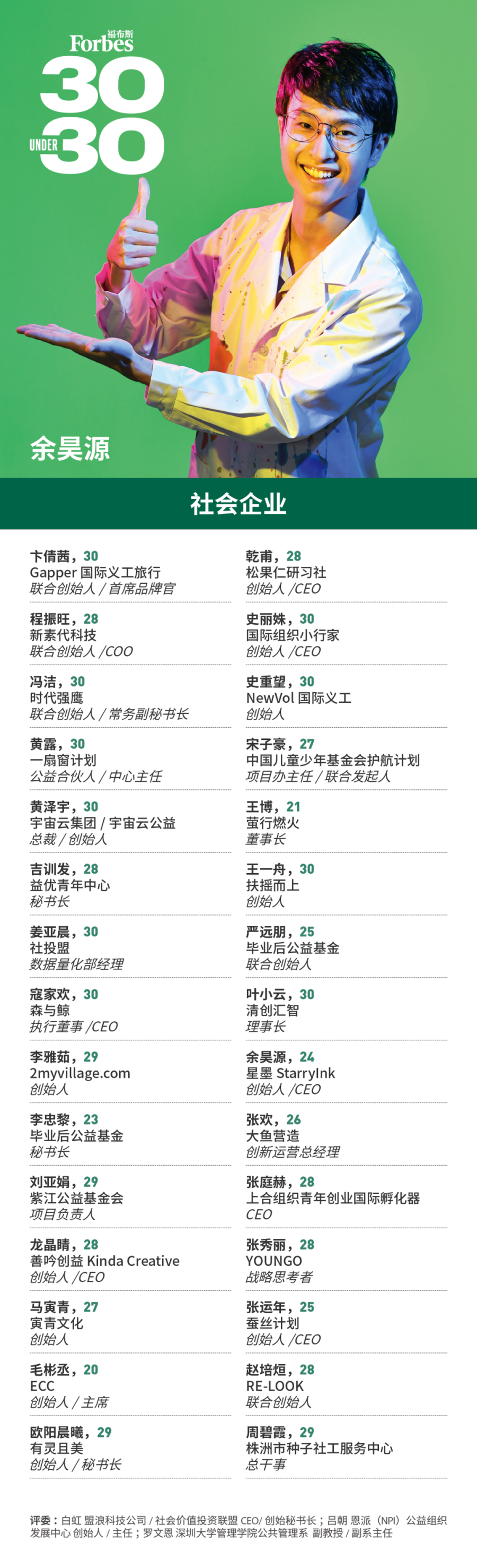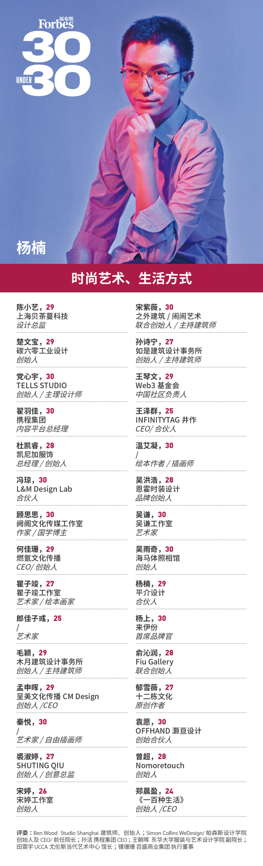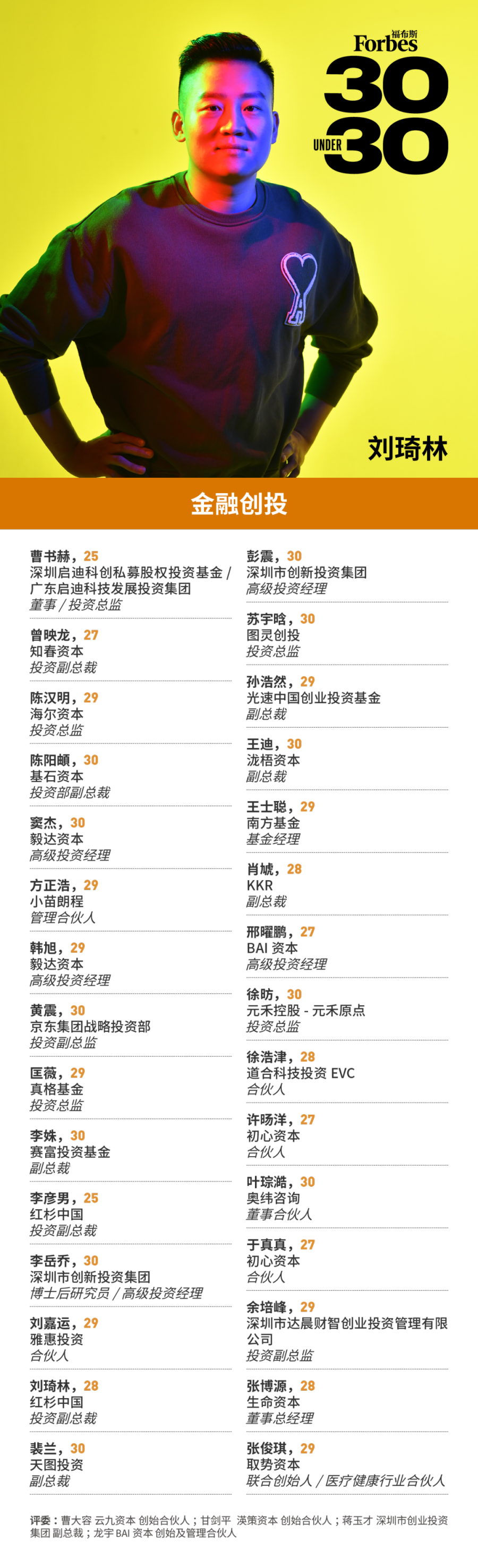 福布斯寻找那些年龄在30岁以下,在业内崭露头角,或者展现出成为未来行业及社会翘楚的潜在力量。他们砥砺前行,不负韶华,在平凡中铸就伟大!这项评选被称为30 Under 30。