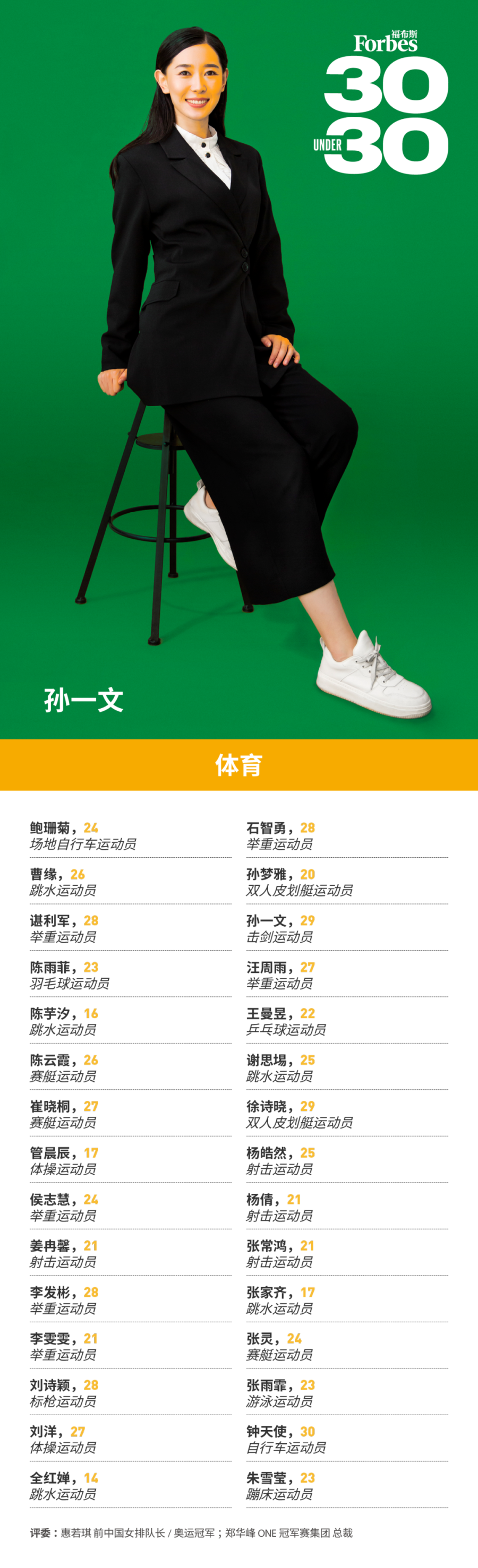 福布斯中国发布30 Under 30榜单:年龄最小的是全红婵