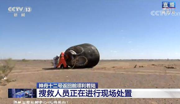 神舟十二号载人飞船返回舱顺利着陆,搜救人员立即跑向返回舱。一起期待三位航天员出舱!
