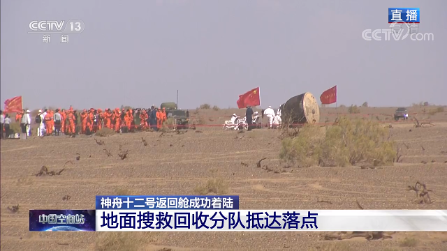 神舟十二号载人飞船返回舱在东风着陆场成功着陆后,执行飞行任务的航天员聂海胜、刘伯明、汤洪波安全顺利出舱,身体状态良好,空间站阶段首次载人飞行任务取得圆满成功。这也是东风着陆场首次执行载人飞船搜索回收任务。