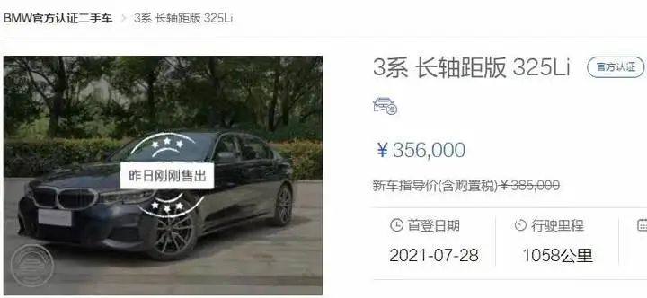 在宝马二手车官方网站上,这样的案例也不少。比如一辆今年7月28日刚上牌的二手宝马325Li,刚行驶1058公里,目前的挂牌价35.6万元,而这款车的新车指导价(含购置税)为38.5万元,如果去掉3万多块钱的购置税,其新车价格和目前的二手车挂牌价确实很接近。