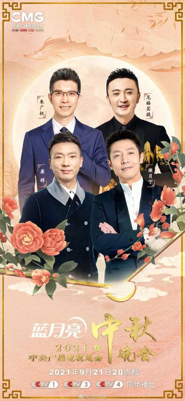 9月21日20点档,2021年中央广播电视总台中秋晚会将在CCTV-1、CCTV-3、CCTV-4播出,一起赏月过中秋!