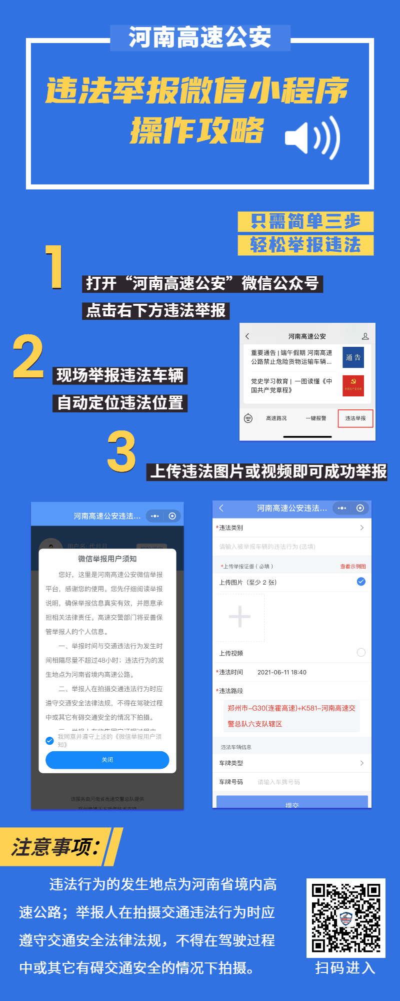 中秋假期期间,河南高速交警实行路面巡逻与视频巡查相结合的勤务模式,开展违法占用应急车道专项治理行动,疏导保通时专门派出警力重点严查占用应急车道违法车辆,确保生命通道畅通;同时依托全省高速公路缉查布控系统、视频监控设备、区间测速系统覆盖全省高速,实行“一点违法、多点预警、区域拦查”执法模式,智能抓拍超速、违法占用应急车道、不系安全带、开车打电话、大车占道等违法车辆,网上网下联动,严查违法除隐患。对在省内高速公路上发现的违法占用应急车道、酒驾、毒驾、涉牌渉证、非法运载爆炸物品、易燃易爆化学物品以及剧毒、放射性等危险物品、交通肇事后逃逸等交通违法犯罪行为,广大群众可以通过拨打“110”报警电话、河南高速交警报警电话0371-68208110、河南高速公安微信公众号中“违法举报”栏目等方式进行举报。高速交警介绍说,在“河南高速公安”微信公众号“违法举报”栏目举报违法车辆可以直接准确确定违法车辆所在位置,举报更有效。【有奖举报】有效举报七座以上客车超员,最高奖500元