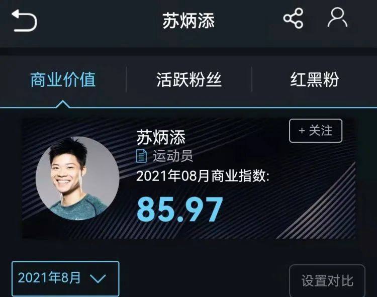 根据艾漫数据公司发布的2021年8月月度大盘数据报告,苏炳添热度指数和代言指数居高不下,商业价值成绩亮眼。