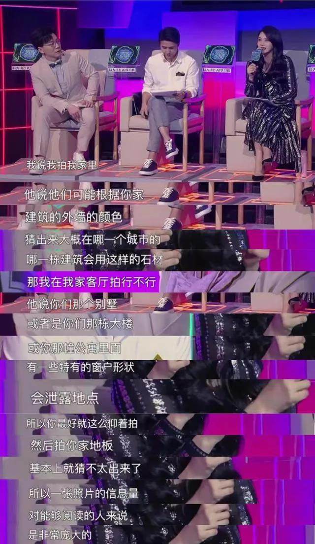 “他们可能根据你家建筑外墙的颜色,猜出大概在哪一个城市、哪一栋建筑会用这样的石材。”那在客厅自拍行不行?伊能静接着说,“别墅、大楼或者公寓,有一些特有的窗户形状,会泄露地点,所以你最好仰着拍,拍你家地板,基本上就猜不太出来了。”“一张照片能泄露多少隐私?”引来现场激烈讨论,话题还冲上了微博热搜。