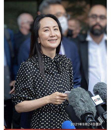 2021年9月25日,孟晚舟与美国司法部达成暂缓起诉协议,终于踏上了归国的路。