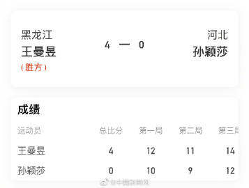 王曼昱直落四局战胜“小魔王”孙颖莎