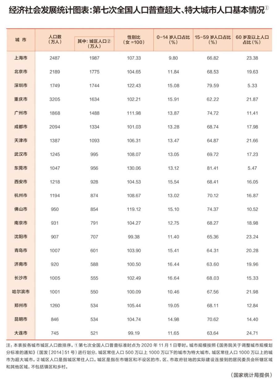 近期,国家统计局在《求是》杂志上公布了7个超大城市、14个特大城市的人口数据。