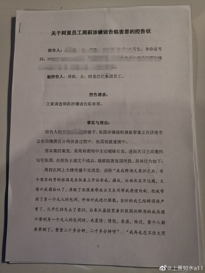 9月27日,阿里女员工案张某妻子发文称已正式向公安机关控告周某。公安机关正式受案。
