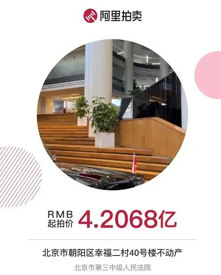 到了9月,北京市第三中级人民法院又通过阿里拍卖平台公开拍卖綦建虹另一处诉讼资产——北京市朝阳区幸福二村40号楼,具体包括40号楼-1层40-201、1层40-211等8处房产,评估价值5.25亿,起拍价约4.2亿元。最终,本次拍卖遭遇“流拍”。