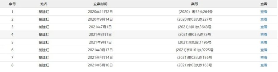 记者查询中国执行信息公开网了解到,54岁的綦建虹目前仍是8个案件的被执行人,面临共计约11.69亿元的强制执行债务。