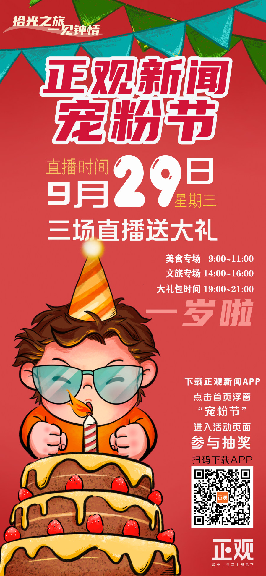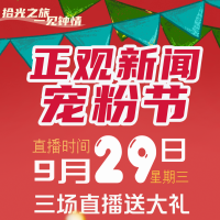 是的,你没有看错!9月29日上午9点,正观新闻“宠粉节”正式开启,一天三波直播,史无前例的爆款福利通通“送”!“送”!“送”!