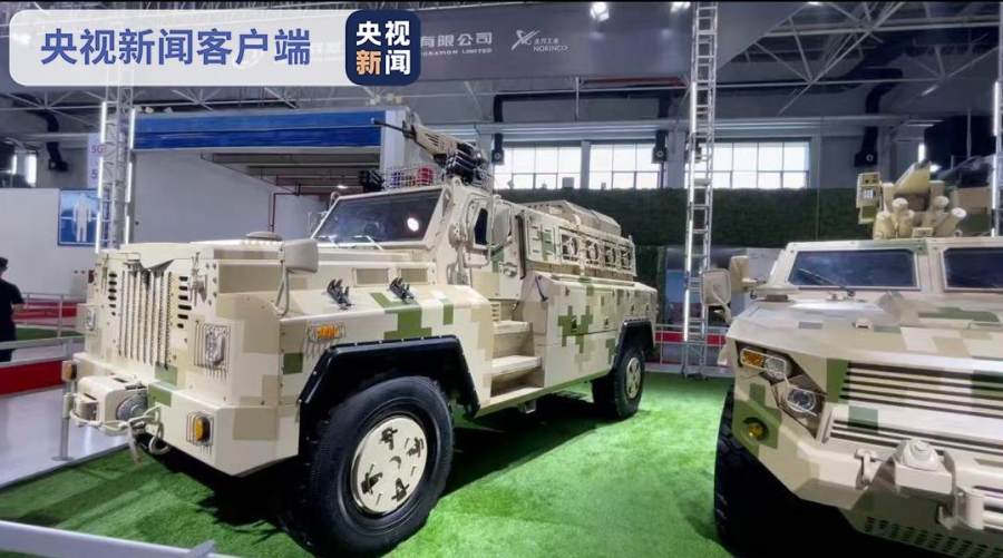 展馆中,VT4、VT5主战坦克与各式装甲车、榴弹炮等装备悉数到场。其中VN22 6×6轮式装甲车,是本届航展首次发布的一款明星产品,造型科技感十足。