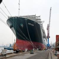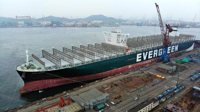 堵塞苏伊士运河的“长赐”轮在青岛开始维修作业