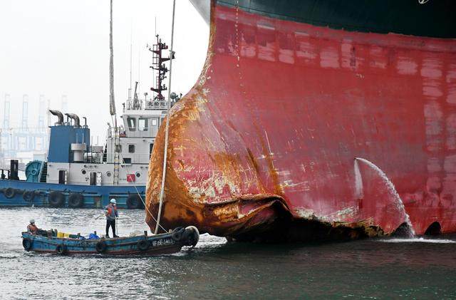 10月4日,“长赐”轮在青岛海事部门领航下驶向中国船舶武船集团青岛北船重工修船分厂。