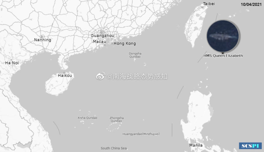 另外,据@南海战略态势感知称,10月4日,“哨兵”卫星捕获英海军“伊丽莎白女王”号航母经巴士海峡进入南海,一同出现在巴士海峡的还有美海军“卡尔·文森”号航母的CMV-22B舰载运输机,推测“卡尔·文森”号或已一同进入南海活动。
