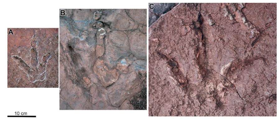 目前,云南产出的恐龙骨骼化石大多数属于基干蜥脚型类恐龙,兽脚类恐龙种类较少,而本次研究报道的足迹经鉴定均属于兽脚类恐龙足迹。对这些足迹进行形态学研究,并探讨潜在的造迹动物及古环境,为云南兽脚类恐龙多样性、行为以及地理分布等问题提供额外的证据,对研究该地区古生态具有重要的价值。