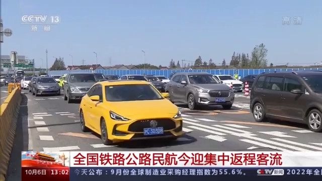 公路方面,今天上午8时起,全国高速公路返程流量逐步增加,预计今日午后将出现集中返程车流。北京、上海、杭州、苏州、成都等大中城市周边重要出入口及绕城高速路段,过江过河重要通道、长大隧道路段等部分路段出现了阶段性集中出行情况。