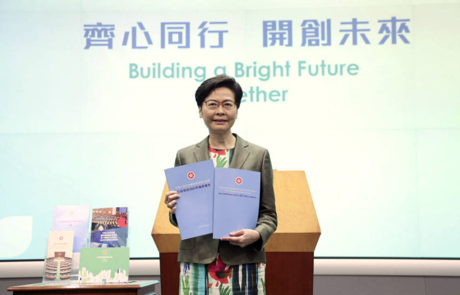 香港特区行政长官林郑月娥6日在特区立法会发表了2021年施政报告。在香港已由乱转治的新局面下,这份长达55页的施政报告聚焦经济民生,回应市民关切,着眼国家战略机遇,完善香港空间布局,积极为香港谋划未来,力促特区全面融入国家发展大局。