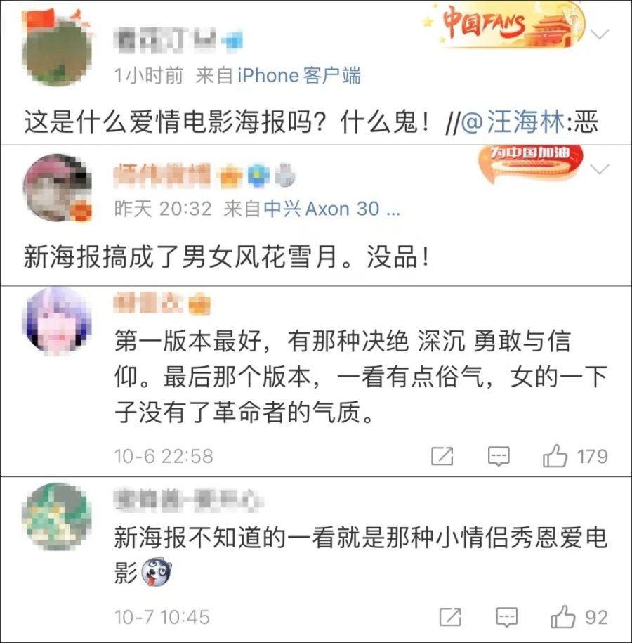 有不少网友认为新海报主图修改成主角夫妻,缺乏了原版的革命气质和隐秘战线的紧迫感。
